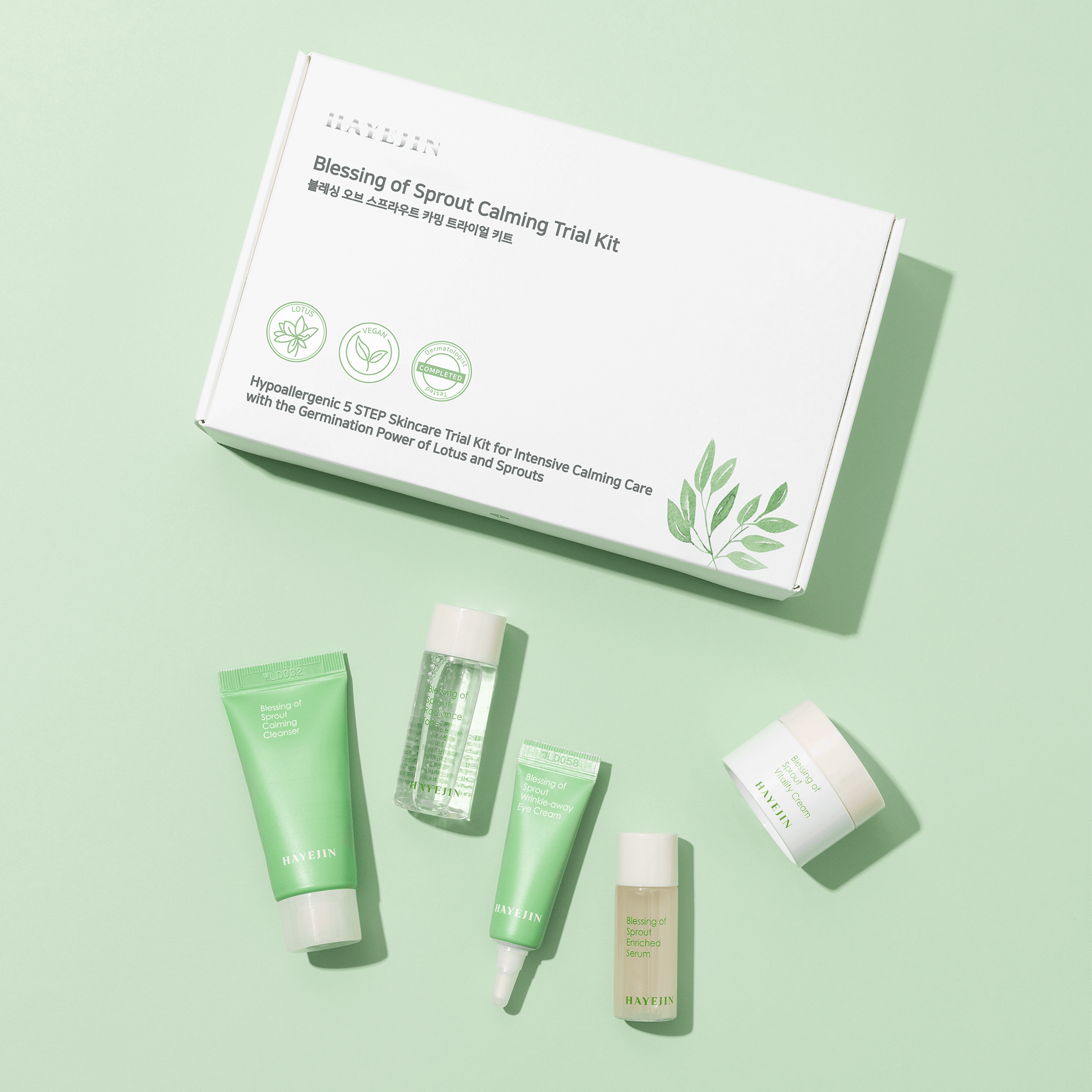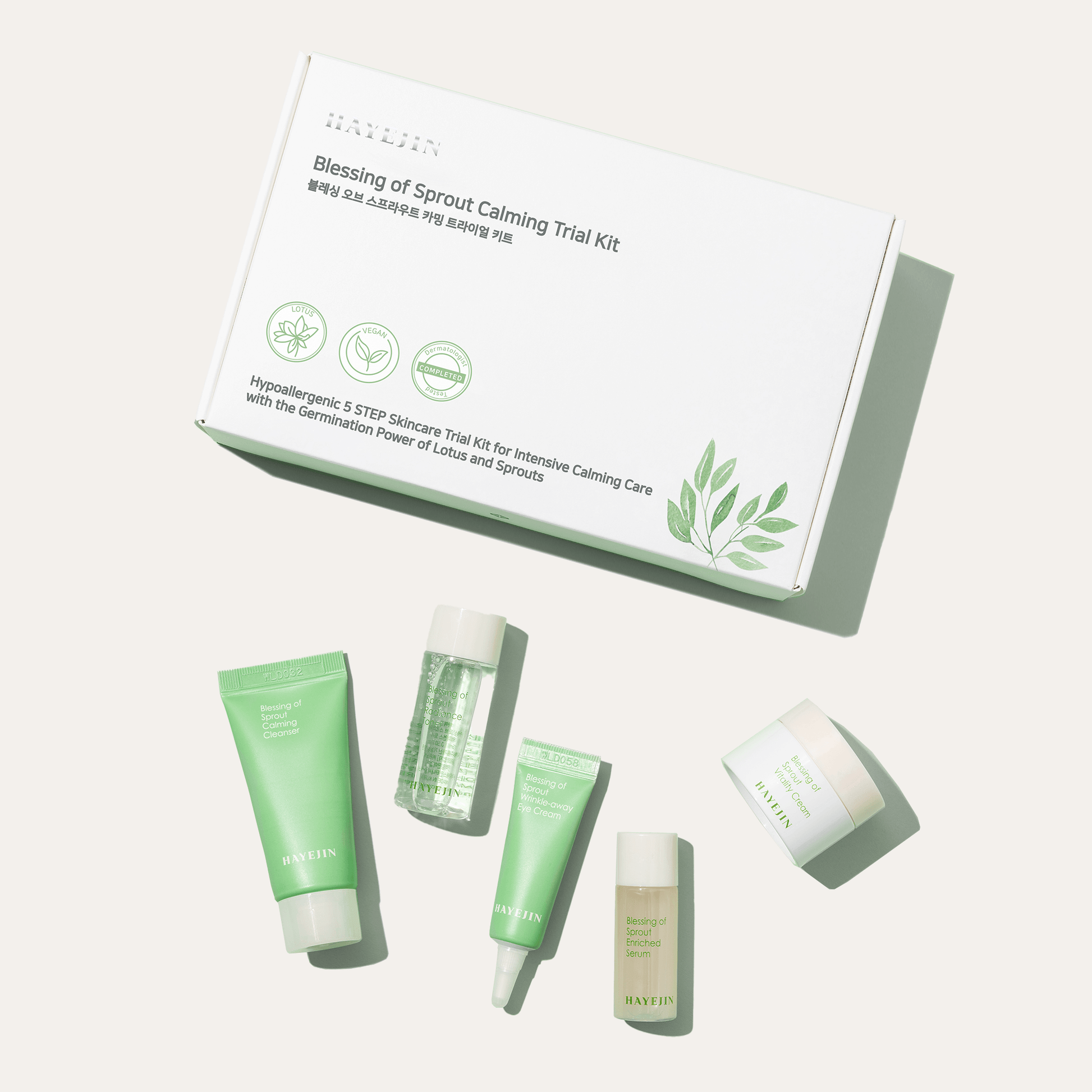 Produkty HAYEJIN Blessing of Sprout sú Vegan, Hypoalergénne a Dermatologicky testované.