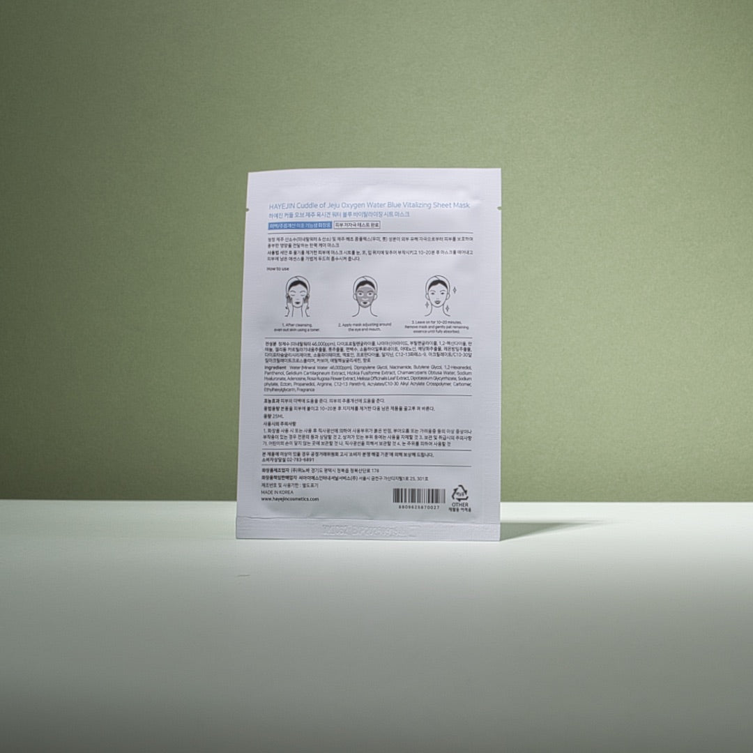 Kyslíková pleťová plátienková maska čerpá svoje jedinečné vlastnosti z čistého a minerálne bohatého prostredia ostrova Jeju, ktorý leží v Žltom mori a je známy svojimi omladzujúcimi vlastnosťami. Táto voda je vďaka vulkanickej vrstve bohatá na kyslík a minerály. Poskytuje pleti hĺbkovú hydratáciu, spevnenie a osvieženie.