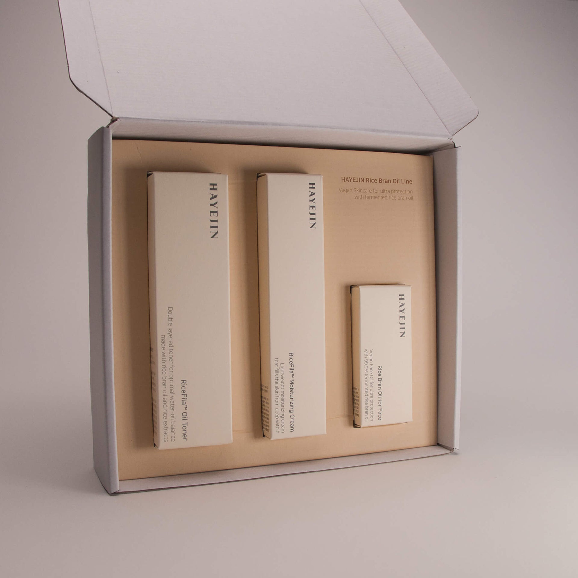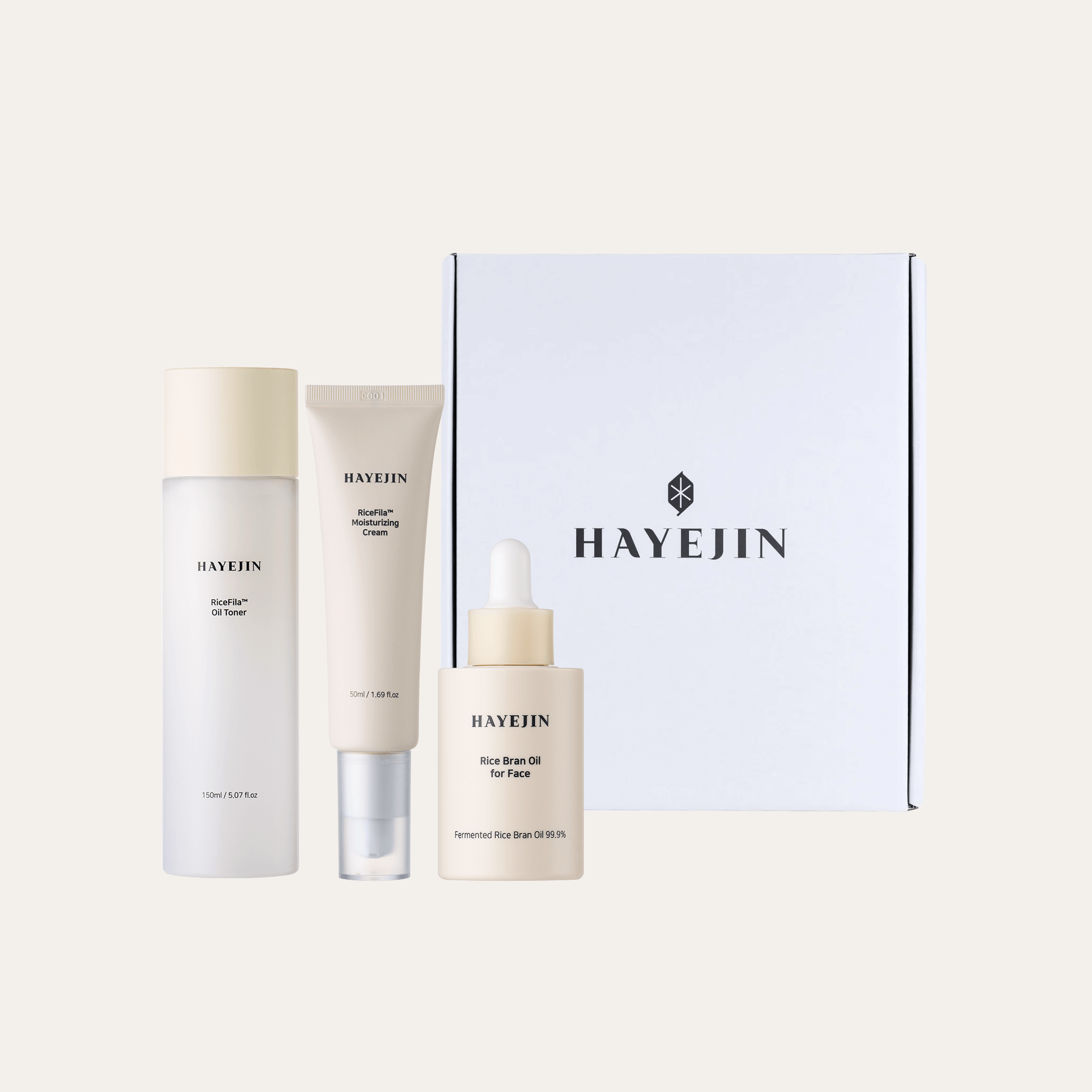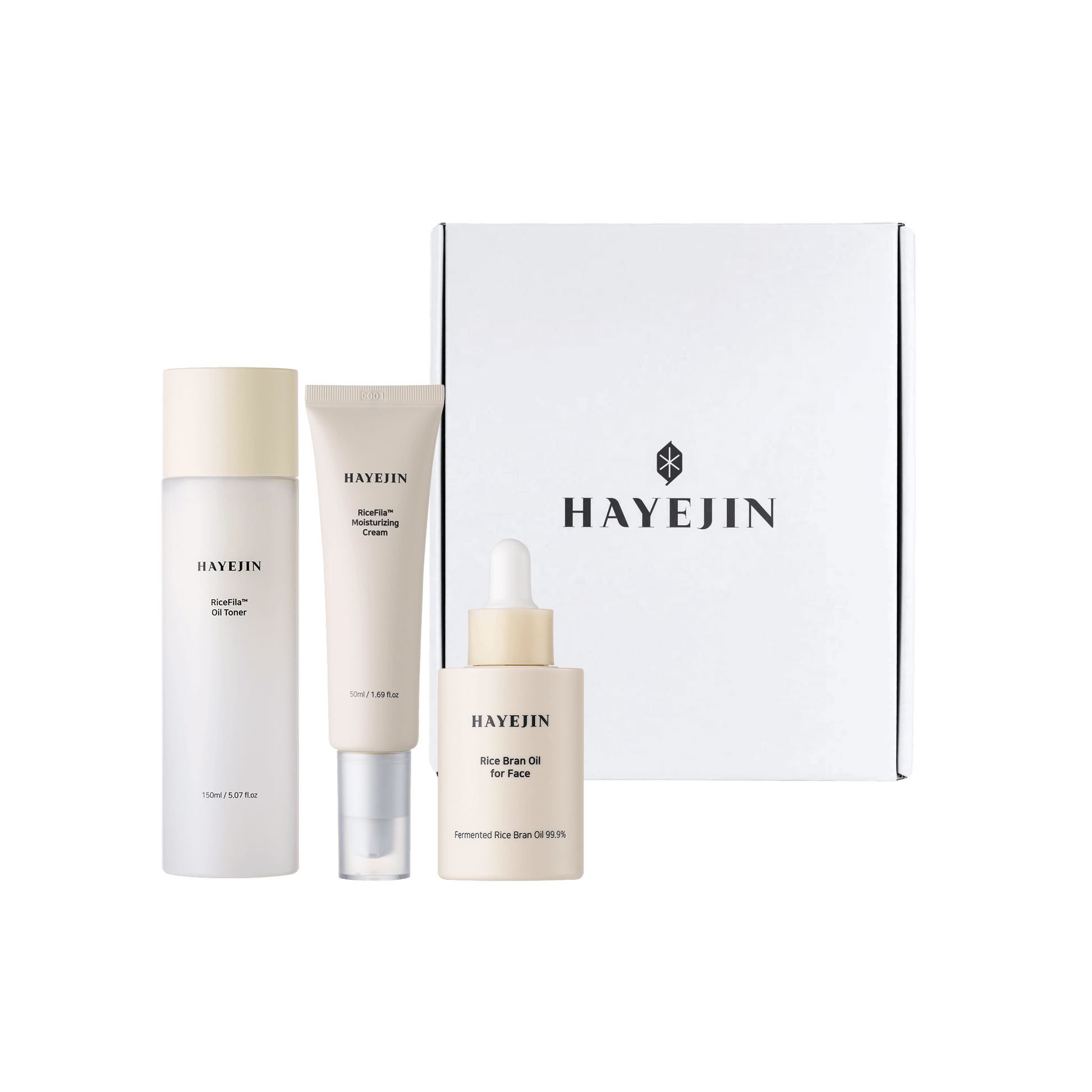 Darčekový box kórejskej kozmetiky HAYEJIN Rice je luxusná sada starostlivosti o pleť, ktorá kombinuje tri kroky na dosiahnutie zdravej, hydratovanej a rozjasnenej pleti.
